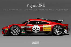 Ehrlich gesagt, uns gefällt die Version als Hommage an die „Rote Sau" am besten. Als rotes Biest ist der Project ONE ein kongenialer Nachfolger des Mercedes-Benz 300 SEL 6.3, der 1971 beim 24-Stunden-Rennen in Spa 1971 den Klassensieg und den zweiten Rang im Gesamtklassement herausfuhr.