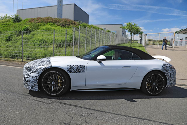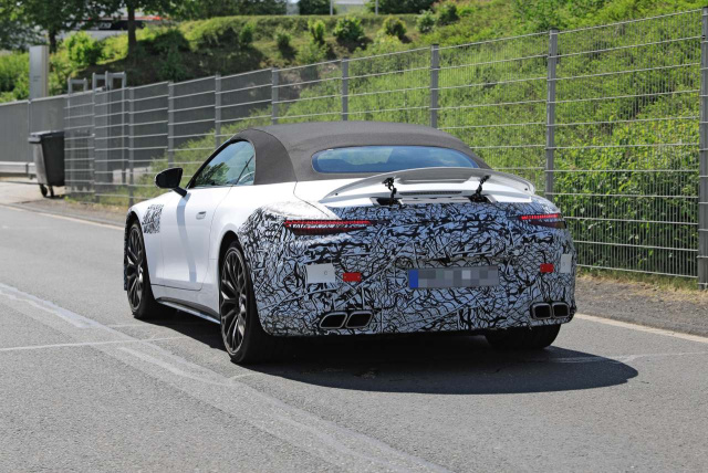 Ursprünglich sollte der neue Mercedes SL schon im Jahr 2021 debütieren. Doch in Affalterbach hat man sich getreu der Devise „Gut Ding will Weile haben" etwas mehr Zeit für die Entwicklung genommen. Das freilich soll am Ende der Schaden der Mercedes-AMG-SL-Zielgruppe nicht sein. Wir dürfen den neuen 2+2-Sitzer als sportlichen und bärenstarken Flitzer mit bis zu 800-PS-Leistung erwarten. Kunden dürfen sich bei dem Mercedes-Roadster, der ein begeisterndes und emotionales Fahrzeug sein wird, nicht nur über viel Kraft und ausgezeichnete Fahrleistungen, sondern auch über das Comeback des Stoffdachs (elektrisch bedienbar natürlich) freuen. Keine Frage: der Mercedes-AMG SL kehrt wieder zu seinen Wurzeln, zurück. Übrigens: Das Kürzel SL in der Modellbezeichnung des Mercedes-Sportwagens hat einige Auslegungen erlebt. Steht es nun für „sport leicht“ oder „super leicht“? Bei Mercedes-Benz hat man die Sprachverwirrung im Fahrerlager mittlerweile geklärt. Die höchstamtliche Bedeutung lautet: Das „S“ steht für „super“ und das „L“ für „leicht“. (Bilder: SB Medien/ S. Baldauf)