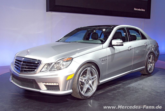 Mit dem E 63 AMG zeigen die Stuttgarter eine alltagstaugliche Sportlimousine, die sich von den Serienmodellen durch ein komplett neu entwickeltes AMG Ride Control Sportfahrwerk mit elektronisch geregelter Dämpfung und neuer Vorderachse sowie durch das eigenständige Exterieur- und Interieurdesign unterscheidet. Für den Vortrieb sorgt der 6,3-Liter-V8-Motor mit einer Leistung von 525 PS und 630 Newtonmetern Drehmoment. Die Kraftübertragung übernimmt das AMG Speedshift 7-Gang-Sportgetriebe, das vom SL 63 AMG stammt. Aus dem Stand erreicht der E 63 AMG Tempo 100 nach 4,5 Sekunden; die Höchstgeschwindigkeit beträgt abgeregelte 250 km/h.