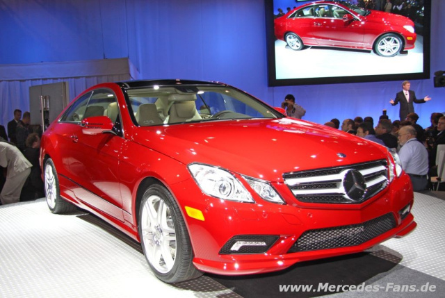 US-Premiere feiert das E-Klasse Coupé mit der klassischen Coupé-Seitenlinie ohne B-Säule und mit voll versenkbaren Seitenscheiben. Gleichzeitig setzt das Coupé einen neuen Bestwert beim Luftwiderstand: Mit einem cW-Wert von 0,24 ist das Coupé das strömungsgünstigste Serienautomobil der Welt. Das neue Coupé der E-Klasse verfügt über die gleiche Technik wie die Limousine.