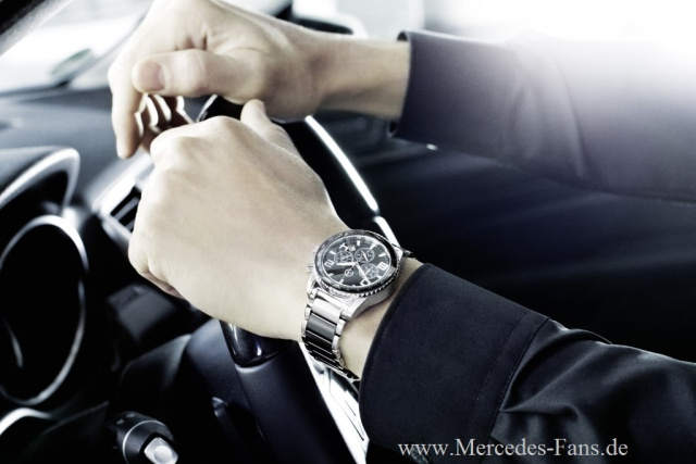 Mit gleich sechs neuen Armbanduhren baut die Mercedes-Benz Accessories GmbH ihr Angebot an edlen Zeitmessern weiter aus. Funky Elegance heißt eine neue Armbanduhr für Damen, ausgestattet mit einem Edelstahl-Armband, einem Zifferblatt in der Farbe Taupe sowie einer Datumslupe. Ergänzt wird diese durch eine in matt schwarz gehaltene 3-Zeiger-Uhr mit großem Ziffernblatt. Ein besonderes Highlight ist der swiss-made Quarz-Chronograph zum Jubiläum des 300 SL. Das Ziffernblatt in edlem creme-beige mit graviertem Wellenmuster zeichnet sich durch die originale 300-SL-Typo aus. Neu in der Motorsports Selection sind der limitierte Chronograph sowie eine sportiv schlichte 3-Zeiger-Uhr im aktuellen Motorsportdesign. Und auch der sehr erfolgreiche Chronograph Business, der weiterhin mit dem beliebten Keramikarmband ausgestattet ist, wurde neu aufgelegt.