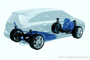Das Concept B-Class E-CELL PLUS ist ein voll alltagstaugliches Elektrofahrzeug, das das Beste aus zwei Welten verbindet: rein elektrisches Fahren und das Fahren mit einem bewährten Hightech-Verbrennungsmotor. In Kombination erlaubt dieses Antriebskonzept Langstreckenfahrten, die bisher nur rein verbrennungsmotorisch oder bei Elektrofahrzeugen mit Brennstoffzelle möglich sind. Die beiden Antriebsaggregate sind äußerst kompakt und finden zusammen mit dem Getriebe und dem Generator als Einheit vorne im Motorraum ihren Platz. Die leistungsstarke Lithium-Ionen Batterie und der Kraftstofftank befinden sich in einem speziell für alternative Antriebe entwickelten Zwischenboden unterhalb des Fonds, dem sogenannten „Energy Space“. Dort können für andere Antriebsvarianten beispielsweise auch Gas- oder Wasserstofftanks untergebracht werden.