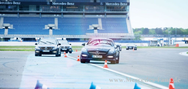 Kern des Driving Event-Programms von Mercedes-Benz ist es, nicht nur die Basics für sicheres Fahren und souveräne Fahrzeugbeherrschung professionell zu vermitteln, auch der geübte Autofahrer oder Berufsfahrer kann hier sein fahrerisches Können weiter ausbauen. Dazu werden verschiedene Trainingseinheiten mit einem Schwierigkeitslevel von 1 bis 5 angeboten, beginnend beim Basic Training, darauf aufbauend das Advanced Training bis hin zum Perfection Training, bei dem mit hohem Tempo mit einer maximalen Höchstgeschwin-digkeit von bis zu 140 km/h in den Übungsstationen gefahren wird.