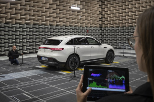 Unter diesen und noch weit mehr Vorgaben arbeiten die Soundexperten im Akustikprüffeld im Mercedes-Benz Technologie Center (MTC) in Sindelfingen daran, dem elektrifizierten Mercedes am künstlichen Soundtrack zum Stern. In den Außengeräuschprüfständen wird mit speziellen Mikrofonen für jedes Elektromodell ein individuell abgestimmter E-Sound entwickelt. Bis das Ergebnis perfekt ist, wird immer wieder simuliert, gemessen, bewertet und bis ins Detail optimiert. Für die anschließenden Testfahrten ist zusätzlich ein überaus sensibler Begleiter dabei – der Kunstkopf. Er zeichnet feinste Geräusche auf und kommt dem menschlichen Hören dabei beeindruckend nah.