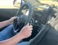 So sind jetzt deutlich neue Lüftungsdüsen am oberen Rand des Armaturenbrett zu erkennen. Aber noch interessanter ist der Blick auf den Tacho. Der digitale Bildschirm des Tacho ist deutlich größer und höher, aber es ist nur noch ein einzelner Bildschirm. Der Bildschirm für das Entertainment oder die Navigation muss sich an anderer Stelle unter der Tarnung befinden.