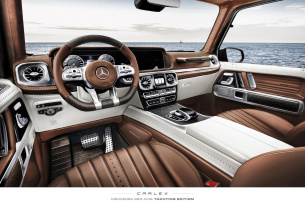 Weil ihnen die Form des G63 ab Werk als bestens gelungen erscheint, haben die Carlex Designer bei der Konzeption der Mercedes G 63 AMG YACHTING EDITION auf zusätzliche Aero-Stylingparts verzichtet. Die Karosserie konnten sie nicht besser machen, verfeinern indes ließ sie sich dagegen schon.