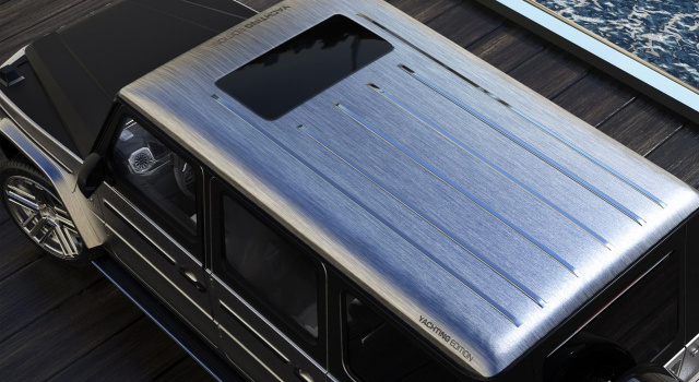 Das Dach der G-Klasse präsentiert sich im Brushed-Metal-Look und weist zudem polierte Dekore auf.