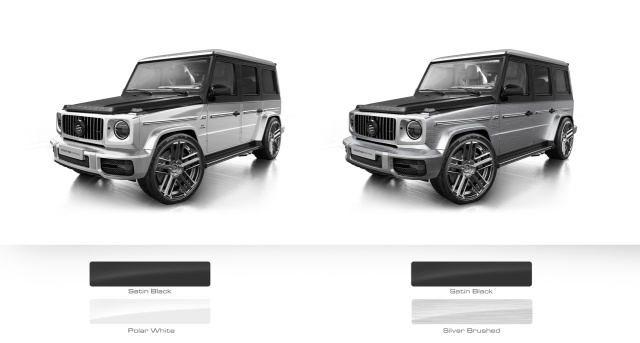 Der G Yachting Limited Edition ist in zwei Unterbauvarianten erhältlich: Polarweiß oder Gebürstetes Silber. Die Oberkarosserie des Wagens ist jeweils satinschwarz lackiert.