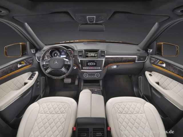 Neben dem hohem Fahrkomfort bei exzellenter Fahrdynamik sowohl auf der Straße wie auf unwegsamem Terrain verwöhnt die GL-Klasse ihre Insassen auch mit einem Innenraum, der auf dem First-Class-Niveau einer luxuriösen Limousine liegt. Bis zu sieben Passagiere genießen ein hervorragendes Platzangebot. Kraftvoll-dynamische und elegante Innenraumarchitektur, edle Materialien und viel Liebe zum Detail, perfekte Ergonomie und großzügige Platzverhältnisse – das Interieur der GL-Klasse vermittelt das markentypische Wohlfühlambiente von Mercedes-Benz. Großflächige Zierelemente in verschiedenen Holz- oder Aluminiumvarianten, Bedienelemente in Silber-Chrom sowie die Polsterung mit der atmungsaktiven Ledernachbildung ARTICO und den Ziernähten in Kontrastfarbe unterstreichen den hochwertigen Gesamteindruck.