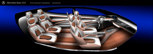 Der coupehafte GLF 2022 von Javier Rodríguez Blasco ist in der Oberklasse angesiedelt. Sehr edel wirkt der Interieurentwurf mit vier Einzelsitzen und conceptcarmäßig angehauchtem Armaturenbrett. Der GLF 2022 vereint mehrere Designelemente von Mercedes-Benz-Cars. Sehr auffällig ist der an den EQC angelehnte Grill. Gleichwohl reiht sich der GLF 2022 offenbar nicht in die Phalanx der vollelektrischen Sterne ein. (Bilder: Javier Rodríguez Blasco)