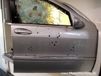 Die S-Klasse in der Guard-Ausführung wurde vom Beschussamt Ulm zertifiziert, nachdem 250 Schuss auf einen Prototypen abgegeben worden waren. Handgranaten aufs Dach und unter den Fahrzeugboden platziert, konnten den Dummys im Innenraum ebenfalls keinen körperlichen Schaden zufügen. Und der eingejagte Schrecken wird bei solchen Puppen nicht gemessen.