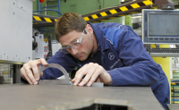 - Im intransparenten Bereich kommt durchweg passgenau geformter Spezialstahl zum Einsatz. Im Bereich der A-, B- und C- Säule sowie bei Stirnwand und Dach verstärkt er gleichzeitig die Fahrgastzelle und erhöht die Strukturfestigkeit.