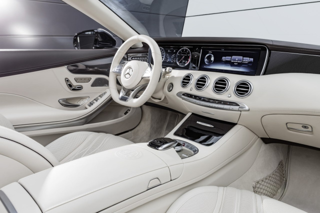 Die schön gestylte Außenhaut umhüllt eine grundsolide Struktur, die dank des intelligenten Materialmixes gleichermaßen hochfest und leicht ist. Die Karosserie des neuen S 65 Cabriolets erreicht bei der Verwindungssteifigkeit die Werte eines Coupés.Der außergewöhnlich stilvolle Charakter des Zwölfzylindermodells zeigt sich auch innen: Das S 65 Cabriolet empfängt seine Passagiere mit einem exquisiten Ambiente. Die Sportsitze in designo Leder Exklusiv Nappa setzen mit der spezifischen Sitzgrafik im Rauten-Design eigenständige Akzente. Überall dort, wo Nähte verlaufen, findet sich bewusst keinerlei Perforation im Nappaleder. Das Resultat sind ein außerordentlich sauberer Verlauf der Kontrastziernähte und ein einzigartiger Qualitätseindruck. Elektrische Verstellung, Memoryfunktion und Sitzklimatisierung sind serienmäßig. Stärker konturierte Sitzflächen und Rückenlehnen verbessern den Seitenhalt in schnellen Kurven. Das Stoffverdeck ist innen komplett mit Mikrofaser DINAMICA ausgekleidet. Edles Leder Nappa umhüllt den Scheibenrahmen inklusive der A-Säulen, die Dachverkleidungsteile und die Sonnenblenden.