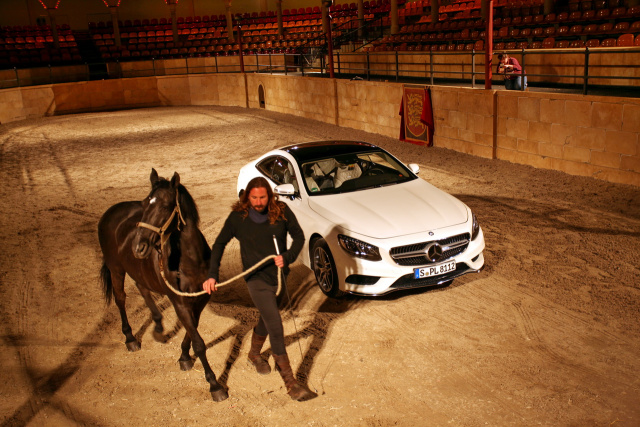 Danach ging es mit anderen Fahrzeugen in die nächste Shooting-Runde, die bis in die frühen Morgenstunden andauerte. Wir ließen es uns auch nicht nehmen, unser Zweitmodel, einen weißen CLS 350 cdi, nochmals an verschiedenen tollen Locations zu shooten. Zwischendurch besuchten wir immer wieder die anderen Shooting-Teams und schauten ein wenig über deren Schulter. Wahnsinn, was da teilweise für ein Aufwand getrieben wurde! Nebelmaschinen, Drohnen und meterlange Rigs machten atemberaubende Bilder möglich. In der spanischen Arena boten sogar die parkeigenen Pferde und Feuerspucker eine besondere Show für die Kameras. Irgendwann fielen wir dann todmüde ins Bett, um kurz darauf schon wieder beim erstklassigen Frühstück die nächtlichen Erlebnisse auszuwerten.