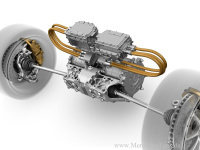 Der rein elektrische Antrieb wurde bereits in der Konzeptphase des Flügeltürers berücksichtigt. Das Packaging bietet optimale Voraussetzungen für die Integration des leistungsfähigen und emissionsfreien Technologie-Pakets: So können die vier Elektromotoren und die zwei Getriebe möglichst nah an den vier Rädern und tief unten im Fahrzeug platziert werden. Das Gleiche gilt für die Hochvoltbatterie in Modulbauweise. Die Vorteile dieser Lösung sind der tiefe Fahrzeugschwerpunkt und die ausgeglichene Gewichtsverteilung ideale Bedingungen für ein optimales Handling, das der elektrisch angetriebene Flügeltürer mit seinem benzinbetriebenen Schwestermodell teilt.
