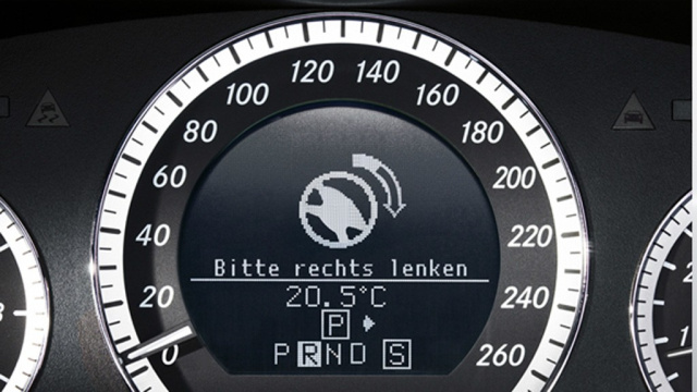 instrument bekommt der Fahrer dann die erforderlichen Lenkradbewegungen angezeigt, um ideal einzuparken. PARKTRONIC inklusive Parkführung arbeitet bei Geschwindigkeiten von unter 35 km/h und lässt sich einfach über einen Schalter am Armaturenbrett deaktivieren.