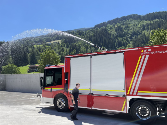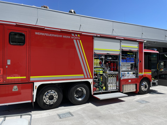 Was den Econic der Werksfeuerwehr in Wörth zukunftsfähiger als andere Löschfahrzeuge macht, ist der mithilfe von Rollcontainern modular gestaltete Aufbau. Er ermöglicht eine große Vielfalt an Beladungsmöglichkeiten. Durch den Tausch von Modulen lässt er sich an veränderte Einsatzbedingungen anpassen. Mithilfe einer Hubladebühne lassen sich die Einsatzmittel schnell aus dem Fahrzeug entnehmen, um diese auch in die oberen Stockwerke des Werkes bringen zu können. Das modulare Konzept ist schlau ausgedacht. Sollten sich die Einsatzbedingungen in Zukunft ändern, muss nicht teuer in ein zusätzliches oder neues Einsatzfahrzeug investiert werden - es genügt eine Ergänzung durch entsprechende Module.