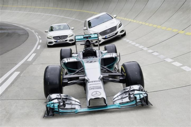Auf den ersten Blick hat die aerodynamische Optimierung von Formel-1- und Straßenfahrzeugen nicht viel gemeinsam. Tatsächlich werden ähnliche Werkzeuge und Methoden eingesetzt wie beispielsweise Windkanal und numerische Strömungssimulation CFD (Computational Fluid Dynamics). Gemeinsame Projekte von Mercedes AMG PETRONAS und Mercedes-Benz umfassen die Erforschung neuer Technologien sowie den Informationsaustausch in bestimmten Bereichen, beispielsweise bei CFD-Techniken.