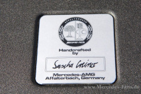 Was dem Chronisten ausgesprochen gut gefällt, ist die mögliche tiefe Sitzposition im CLS. Damit ist langes entspanntes Fahren ebenso möglich, wie ein ambitioniertes Fliegenlassen. Der jetzt sehr niedrige Schwerpunkt des persönlichen Querbeschleunigungsorgans trägt sehr zur Fahrfreude bei. Das Auto teilt sich dann sehr früh mit. Erwähnenswert aus persönlicher Sicht auch noch einmal die rahmenlosen Türen! Bei Sportwagen ein Muss! (Flügeltürer einmal ausgenommen!) Liebevolle Details wie z.B. das ursprüngliche AMG-Logo auf dem lederummantelten Shifter oder das V8-Biturbo-Emblem im Armaturenbrett gibt es viele zu entdecken.