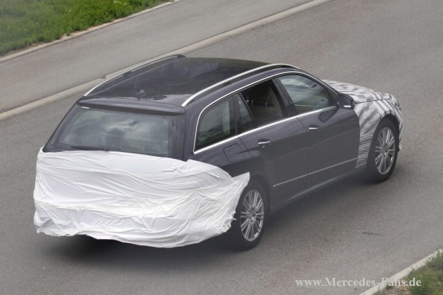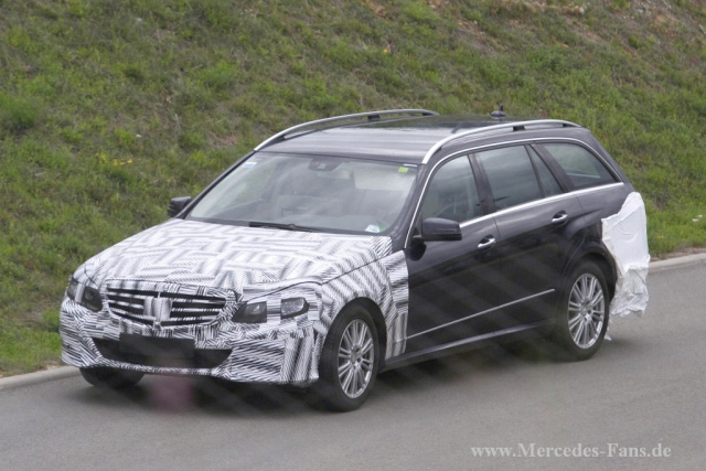 Dies sind die ersten Bilder des E-Klasse T-Modell als Facelift mit weniger Tarnung. An unterschiedlichen Stellen hat unser Erlkönig-Fotograf am gleichen Tag mehrere unterschiedlich getarnte Prototypen dieses Modells erwischt.