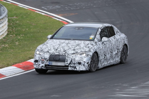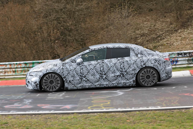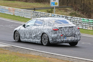 Bildergalerie: EQE Erlkönig auf dem Nürburgring 23 Bilder Fotostrecke | Mercedes EQ Erlkönig auf dem Nürburgring erwischt: EQE-Erlkönig saust surrend durch die Grüne Hölle