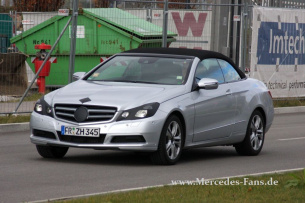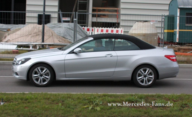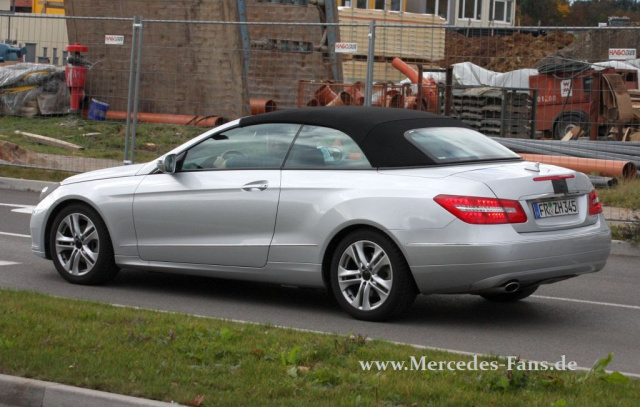 Erstmals taucht das Cabrio nur noch mit dieser zu vernachlässigenden Tarnung auf. Die Linienführung orientiert sich natürlich am E-Klasse Coupé. Die Premiere des Mercedes E-Klasse Cabrios wird wohl nun auf dem Genfer Salon stattfinden.