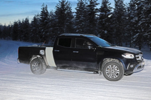 Ein Prototyp der Mercedes Benz X-Klasse mit längerem Radstand ist dem Mercedes-Fans.de Erlkönigjäger beim Wintertest im hohen Norden Europas vor die Kamera gefahren. Der Radstand ist deutlich länger, allerdings ist nur die Länge der Ladefläche gewachsen, denn die Doppelkabine der X-Klasse ist nach wie vor gleich. Der Prototyp ist zwischen der Kabine und der Ladefläche um einige Zentimeter länger und der Tankdeckel sitzt dadurch etwas weiter hinten. Eine mögliche LWB-Variante der X-Klasse für Europa ist eher unwahrscheinlich, aber für den amerikanischen und andere Märkte durchaus vorstellbar. (Bilder: S.Baldauf / SB Medien)