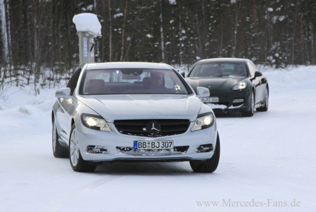 Das Meisterstück von Mercedes-Benz, das noble, luxuriöse CL Coupé wird demnächst "S-förmig" sein. Der Erlkönig-Mercedes, der ja offiziell S-Klasse Coupé heißen wird, ließ sich im üblichen Tarnkappenmodus nicht blicken auch wenn der Grill maskiert wurde.