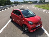 Sicher ist eins: Das Leistungsupgrade durch den Bottroper Veredler Brabus sorgt beim smart wahrlich für „Turbo-lenzen“! Aus dem 3-Zylinder-Turbo kommen 80 Kw/109 PS. 170Nm ziehen und zerren an der Hinterachse! Das sind 5 Kw und 25Nm mehr als bei seinem Vorgänger. Die 109 Pferdestärken katapultieren die Kanonenkugel innerhalb von 10,5 Sekunden auf Tempo 100. Der smart Brabus fortwo ist eine Sekunde schneller und kommt auf 9,5 Sekunden, muss aber in punkto Endgeschwindigkeit einbüßen und erreicht „nur“ auf 165 km/h, während der forfour auf 180 km/h V-Max prescht.