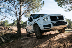 Die G 400d-Reifen haften super auf Teer, auch jenseits der 200k/h-Marke, aber wie kommen sie mit einigen ordentlichen Gelände-Hindernissen zurecht? Gucken wir mal.