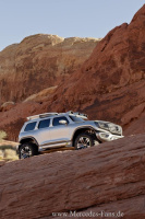 Natürlich ist der Entwurf des Ener-G-Force für die Los Angeles Design Challenge pure, gerenderte Science Fiction. Die Idee des Geländewagens der Zukunft hat die Designer des Advanced Design Studios von Mercedes-Benz in Carlsbad, Kalifornien allerdings so fasziniert, dass sie die Fiktion der Polizeivariante zu einer zivilen Version weiterentwickelt und sogar als 1:1-Modell auf die Räder gestellt haben. Wie auch das Highway Patrol Vehicle 2025 lehnt sich der zivile Ener-G-Force formal an die G-Klasse an, die Offroad-Ikone, deren ununterbrochene Geschichte bis in die 1970er Jahre zurückreicht und bis heute in der formal und technologisch weiterentwickelten Version eines SUVs die Zukunft in Angriff nimmt.