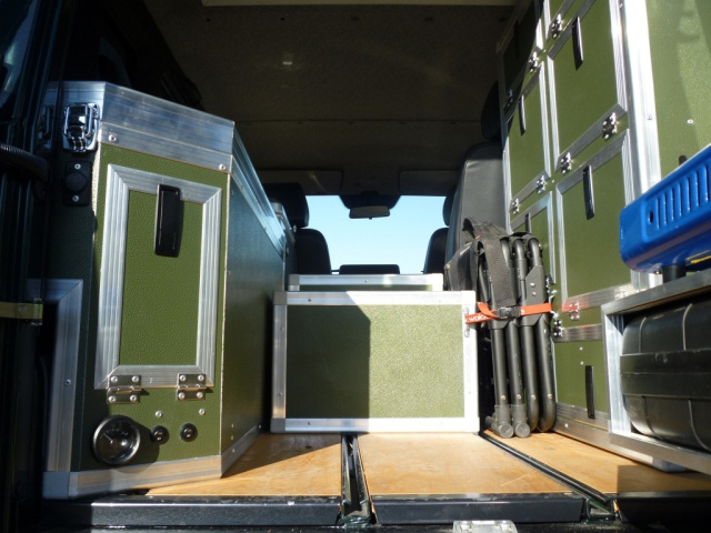 Im Fahrerhaus wurde ein Instrumentenaufsatz auf dem Armaturenbrett montiert. Hier können Schalter, zusätzliche Anzeigen und Instrumente, Telefonkonsole und GPS montiert und untergebracht werden. Um all die elektronischen Geräte, die man mittlerweile auf Reisen so mit sich führt, auch mit Energie versorgen zu können, ist im Fußraum des Beifahrers eine zusätzliche 12 Volt Dreifach-Steckdose verbaut. Hinter dem Fahrersitz ist ein 24 V Wechselrichter untergebracht, er ermöglicht den Einsatz herkömmlicher Ladegeräte, mit denen die Akkus der diversen technischen Geräte aufgeladen werden können.