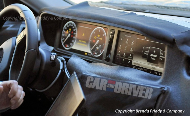 Erlkönigbilder, die das Exterieur der neuen S-Klasse von Mercedes-Benz zeigen, gibt es etliche. Mercedes-Fans.de präsentierte sie zum Beispiel hier. Jetzt ist im Internet ein Bild aufgetaucht, das erstmals das neue LCD-Kombiinstrument der neuen Oberklassen-Limousine von Mercedes-Benz zeigt. Ob es teilweise frei konfigurierbar sein wird? Wie man gut erkennen kann, verfügt das Cockpit über einen rechteckigen LCD-Bildschirm mit zwei großen runden Uhren für Geschwindigkeit und Drehzahl. Interessant ist ferner der Infotainment-Bildschirm mit Touchscreen. Wer genau hinschaut, erkennt, die Anzeige : "COMAND Online." Demnach wird die Mercedes S-Klasse, die für 2012/2013 erwartet wird, also mit einer neuen Internet-Konnektivität ausgestattet sein. (Bildquelle: Car and Driver)