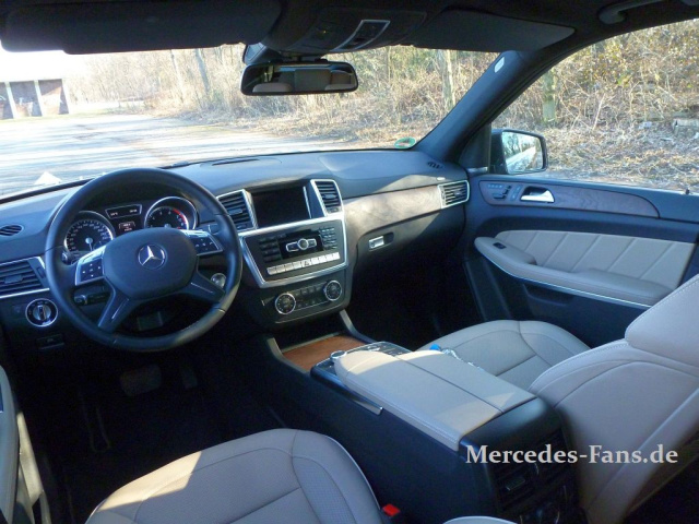 Imposant. Chic, Elegant! Beim Anblick des citrinbraun-metallic-farbenen Super-SUVs fallen einem spontan eine Menge Attribute ein, die der Betrachter vielleicht nicht unbedingt im Lager der Sport Utilities ansiedeln würde. Imposant? Klar logisch, bei einer Länge von 5,15 m und einer Breite von 2,00 m ist der GL in Kombination mit einer Höhe von 1,90 (inkl. mehr Bodenfreiheit-bringendem ON&Offroad-Paket) schon eine respektable Erscheinung. Selbst in den USA, dem Heimatland der SUVs, zählt die GL-Klasse damit zu den Fullsize-SUVs. Chic? Will man angesichts der schieren Größenangaben vielleicht gar nicht vermuten, aber die Designer haben durch die gekonnte Überarbeitung des Blechs den GL deutlich gefälliger und dynamischer gemacht als vorher. Elegant? Aber hallo! Die Kombination aus hochwertigem Leder und wie bei unserem Testwagen feinem Echtholz transportiert absolutes Oberklasse-Flair in das Interieur des GL-500, der serienmäßig über eine dritte Sitzreihe verfügt und so zum Siebensitzer wird. Hinzu kommt, dass die Cockpitgestaltung in allen Details hervorragend gelungen ist und den Insassen in Summe das unschlagbare Gefühl gibt, gut aufgehoben zu sein. Sind sie auch!
