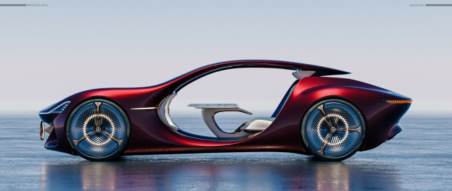 Lujie Hunan beschreibt den Mercedes-Benz Vision Duet Concept als einen elektrisch angetrieben 3-sitzigen GT der als vollkommen autonomes Fahrzeug der Stufe 5 alles Insassen zu Passagieren macht.