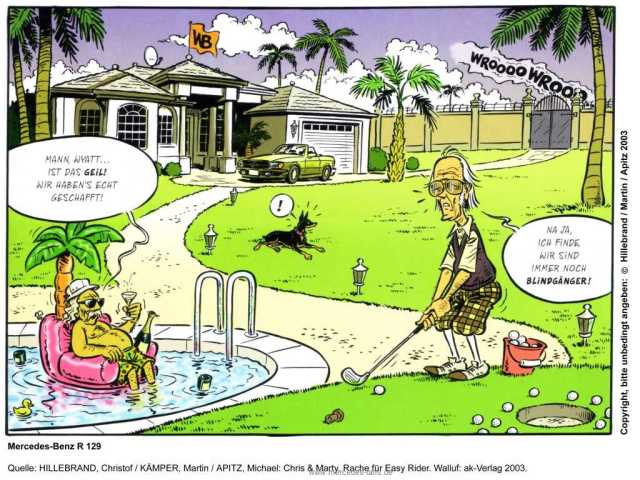Das sind nicht die Ducks, sondern die Ex-Easy Rider Dennis Hopper und Peter Fonda. Die beiden haben es - siehe Mercedes SL (R 129) - offenbar geschafft. Oder doch nicht?
