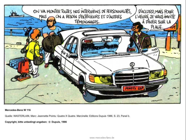 Neben Tim genießen auch andere Journalisten das Privileg, im Mercedes zum Interview anzureisen. Hier ist es gar eine S-Klasse der Baureihe W 116. Hoffentlich ist ihre Story die Sache wert ...