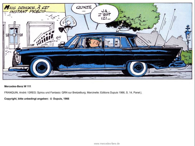 Für Mercedes-Fans sind auch die Comics von Spirou und Fantasio oder Gaston einen Blick wert. Denn hier kommt praktisch die gesamte Mercedes-Modellpalette zum Einsatz - vom Ponton bis zum W 124. Wer es moderner und schnittiger mag, ist bei den Vaillants bestens aufgehoben: Die Rennsportbegeisterte Familie rund um den Protagonisten Michel Vaillant klemmt sich nicht nur hinter das Steuer von Mercedes-Serienfahrzeugen. Stattdessen werden Rennwagen wie der C 291 oder Formel-1-Boliden von McLaren-Mercedes hart rangenommen. Das schöne dabei: Sitzt ein Vaillant am Steuer, ist der Sieg praktisch vorprogrammiert.