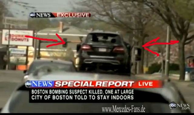 Die Mercedes-Benz M-Klasse, welche die beiden Attentäter als Fluchtwagen nutzen, war nämlich mit dem optionalen Mercedes-Benz System "mbrace" ausgestattet. Dank "mbrace" ist es dem Besitzer eines Mercedes möglich, per Mobilfunkgerät bestimmte Funktionen des Wagens ansteuern und den Standortdes Autos zu bestimmen. Alles was dei Polizei nun noch benötigte war ein Mobiltelefon und der Pin-Code des Fahrzeugbesitzers um sich mit mbrace im Fluchtwagen synchronisieren zu können. Und schon zog sich die Schlinge zu. (Quelle: CNN)