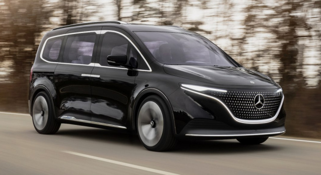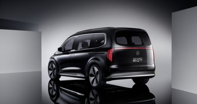 Der Familienvan im bekannten Skischuhdesign wird mit zwei Radständen und somit in zwei Karosserielängen als Fünf- und Siebensitzer verfügbar sein. „Mit der kommenden T-Klasse erweitern wir unser Portfolio im Small-Van-Segment. Damit sprechen wir Familien und freizeitaktive Privatkunden jeden Alters an, die viel Platz und maximale Variabilität brauchen, aber nicht auf Komfort und Stil verzichten wollen“, sagt Marcus Breitschwerdt, Leiter Mercedes Vans. Die Studie des EQT ist auf der verlängerten Plattform unterwegs und somit 4,94 Meter lang und 1,82 Meter hoch. So gibt es viel Platz für drei Sitze in der zweiten Reihe und zwei ausklappbare Sitze im üppig dimensionierten Laderaum, wo zumindest zwei Kinder sitzen können. Der Einstieg in den Fond geschieht über zwei große Schiebetüren, die ebenso wie die weit aufschwingende Heckklappe das Be- und Entladen einfach werden lassen.