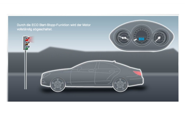 Die von Mercedes Benz entwickelte ECO Start-Stopp-Funktion reduziert Kraftstoffverbrauch und Emissionen durch automatisches Abschalten des Motors bei Standzeiten (z. B. an Ampeln). Ist ein Schaltgetriebe verbaut, wird der Motor beim Ausrollen automatisch abgestellt, sobald eine Grenzgeschwindigkeit von 8 km/h unterschritten ist, der Fahrer bremst und den Ganghebel in Neutralstellung geschoben hat. Betätigt der Fahrer das Kupplungspedal, springt der Motor automatisch an. Ist das Fahrzeug mit einem Automatikgetriebe ausgestattet, muss es bis zum Stillstand (0 km/h) gebremst werden, bevor der Motor abgestellt wird. Wird das Gaspedal betätigt, springt der Motor wieder an.