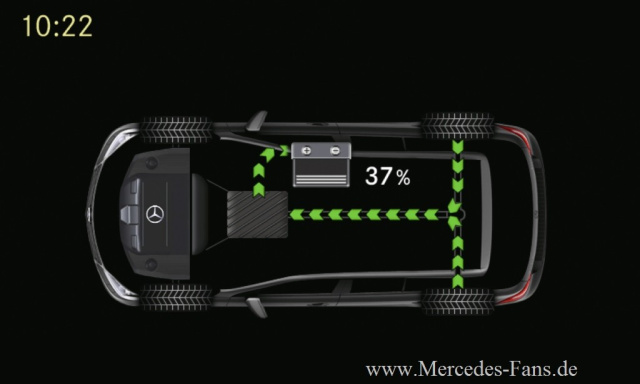 Wer bremst gewinnt: Und zwar Energie! Rekuperation (Rückgewinnung) der Bewegungsenergie heißt das Zauberwort für die Energievermehrung eines mit Elektromotors angetriebenen Fahrzeuges. Mercedes-Benz setzt das Prinzip der Rekuperation in vielen Fahrzeugen mit reinem Elektroantrieb oder Hybrid-Antrieb Die Rückgewinnung der Bewegungsenergie geschieht im Schubbetrieb oder beim Bremsen: Während des Schubbetriebs (Verzögern durch Gaswegnehmen) wirkt die E-Maschine als Generator. Wird das Bremspedal betätigt, wird die Generatorleistung zunächst proportional für eine höhere Verzögerung erhöht. Erst wenn noch stärker gebremst wird, werden zusätzlich die Radbremsen eingesetzt.
