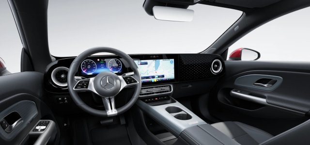- Im Cockpit ist mit einem Layout zu rechnen, das sich stark an der neuen CLA-Generation orientiert, inklusive modernem MBUX‑System und großflächigen Displays.