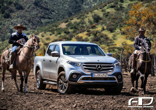 Das zweite Bild zeigt das mögliche X-Klasse-Facelift in einer etwas anderen Perspektive und ohne Schwung in der Seitenlinie (Bilder: Ascariss Design)