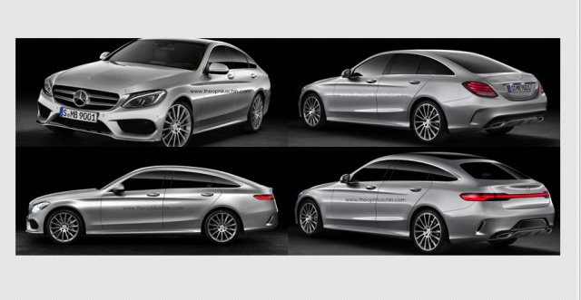 Bei dieser Grafik für das viertürige Mercedes C-Klasse 4-Door-Sportcoupé wurde die Dachlinie des neuen Mercedes Concept Coupé SUV verwendet.