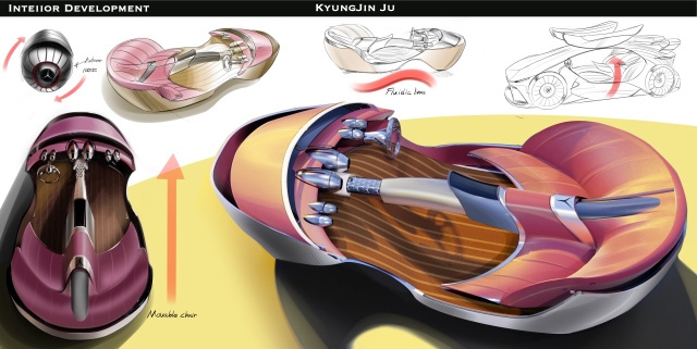 Dass KyungJin Ju meint, die Welt sei im Jahr 2030 bereit für dieses Coupé, ist vielleicht etwas zu kurz gesprungen. 2040 hätten wir angesichts der futuristischen Anmutung und einiger Details wie Naben aus Glas auch geglaubt.