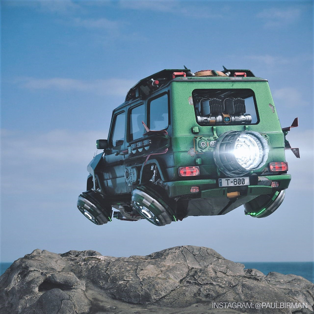 Über etliche Autogenerationen hinweg hat die G-Klasse ihren eigenen Charakter gebildet. Der Mercedes G ist ein zeitloses Fahrzeug, das längst zur Legende wurde. Und der Kult lebt weiter. Noch lange. Da ist sich die Mercedes-Fans.de Redaktion so sicher wie der visionäre Grafiker Paul Birman. Wenn die G-Klasse bis dato alle Wege unter allen Einsatzbedingungen - egal ob off- oder onroad, - gemeistert hat, dann kann sie sich auch eines Tage in die Lüfte schwingen. Oder was meint Ihr? (Bilder: Paul Birman)