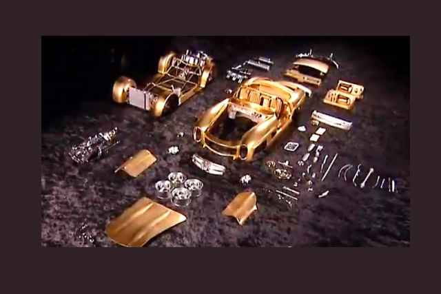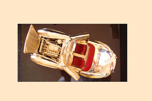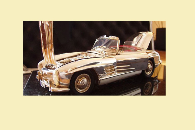 Alle Einzelteile werden - wie bei diesem Mercedes SL Modell - bei Gülpen in Handarbeit aus Silber, Gold, Platin und/oder anderen edlen Materialien gefertigt.