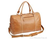 Eine feine Leder-Collection aus cognacfarbenem Kalbsleder im Vintage-Look hat das Zeug zum edlen täglichen Begleiter. Die Collection umfasst eine Wochenend-Reisetasche (Format: 47x30x25 cm) mit stabilen Tragegriffen, dunkelbraunem Baumwoll-Innenfutter sowie Standfüßen zum Preis von 599 Euro*, ein Portemonnaie zum Preis von 149,90 Euro* sowie einen Gürtel für 169,90 Euro*. Allen gemeinsam ist die kostbare Verarbeitung von hochwertigstem Leder mit Einsätzen aus Lochleder, das geprägte historische AMG Logo auf der Außenseite und die Prägung Founded 1967 auf der Innenseite. Passend zur Leder-Collection gibt es einen Schlüsselanhänger für 89,90 Euro*.