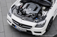 Der eigenständige AMG 5,5-Liter-V8-Motor mit Zylinderabschaltung AMG Cylinder Management und Benzin-Direkteinspritzung kommt exklusiv im neuen SLK 55 AMG zum Einsatz. Damit bleibt der SLK 55 AMG auch in seiner neuesten Auflage der einzige Roadster in seinem Segment mit einem Achtzylindermotor. Auch mit der um 45 kW (62 PS) auf 310 kW (422 PS) gesteigerten Leistung und dem von 510 auf 540 Newtonmeter verbesserten Drehmoment bleibt der Verbrauch mit 8,5 Litern auf 100 Kilometer (NEFZ gesamt, vorläufige Angaben) um 3,5 Liter unter dem des Vorgängermodells. Mit diesem Quantensprung von rund 30 Prozent gehört der neue SLK 55 AMG zu den Besten seines Segments. Die CO2-Emissionen konnten ebenso beträchtlich reduziert werden, wie der Wert von 199 Gramm pro Kilometer beweist.